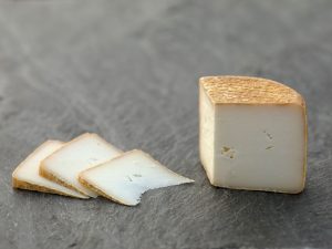 Madurat de llet crua de cabra, d’escorça florida grisa i pasta marfil.