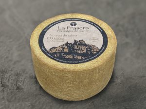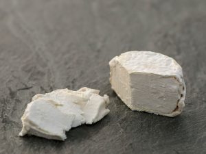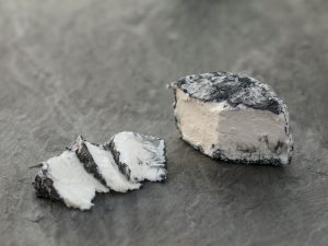 Madurat de llet crua de cabra, d’escorça florida grisa i pasta marfil.